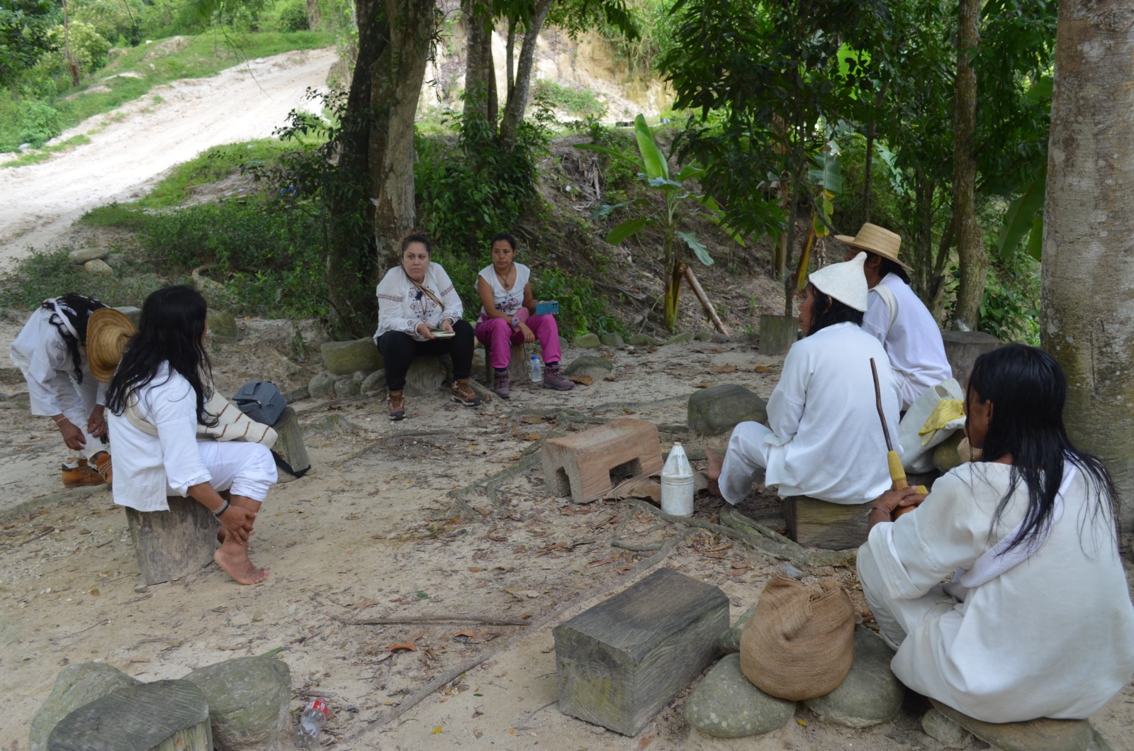 En el marco del proyecto Territorios Sagrados para la Vida, visitó el territorio Wiwa acompañada por la profesora Clarena Rodríguez y la estudiante de Ciencias Ambientales Jackelinne Pineda. Allí, bajo la orientación de los Mamos —autoridades espirituales y sabedores ancestrales—, abordaron temas relacionados con el cuidado de la naturaleza, la protección de los sitios sagrados y su relación con la construcción de paz ambiental