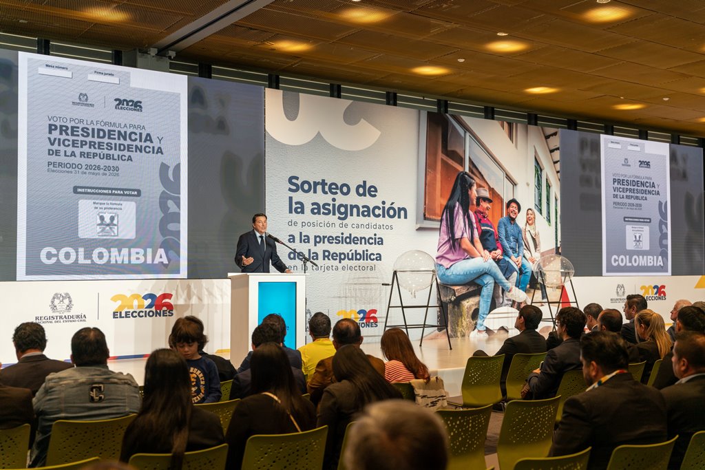 Este miércoles 25 de marzo quedó establecido el orden en que aparecerán los 14 candidatos a la Presidencia de Colombia en la tarjeta electoral del 31 de mayo. La Registraduría Nacional realizó el sorteo en el Centro de Convenciones Ágora en Bogotá, con la presencia de ciudadanos, delegados de las campañas y los propios candidatos Carlos Caicedo y Sondra Macollins, quienes asistieron personalmente al acto.