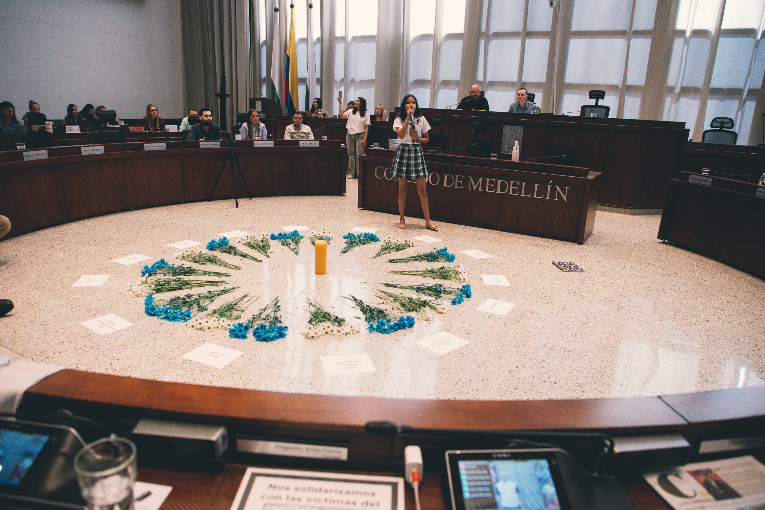 Con un saludo para quienes se encontraban en el recinto María Alejandra Arenas, de la Comunidad de Víctimas, hablo en nombre de ellas familia, amigos y ciudadanía que ha vivido el conflicto armado. » Hoy en la Conmemoración de la Memoria y Dignidad de las Víctimas, esa palabra tan linda que se llama Memoria que debemos vivir presente. Gracias, señores concejales, hoy yo creo que es el día decir necesitamos más acompañamiento institucional, acompañamiento municipal, no más el día de hoy por ser el más significativo, acompáñennos en las comunas. Desde las organizaciones sociales necesitamos que se vea el acompañamiento real y claro en los territorios. Como mujer buscadora de personas desaparecidas, y directora de la Organización Red de Víctimas de Personas Sobrevivientes y representante del Concejo Departamental de Paz, hoy quiero acompañar a mis compañeras y compañeros que son víctimas del conflicto armado. Muchas de nosotros somos esa voz de los que no tienen voz».